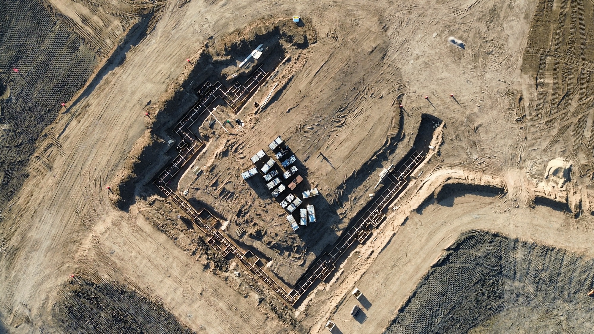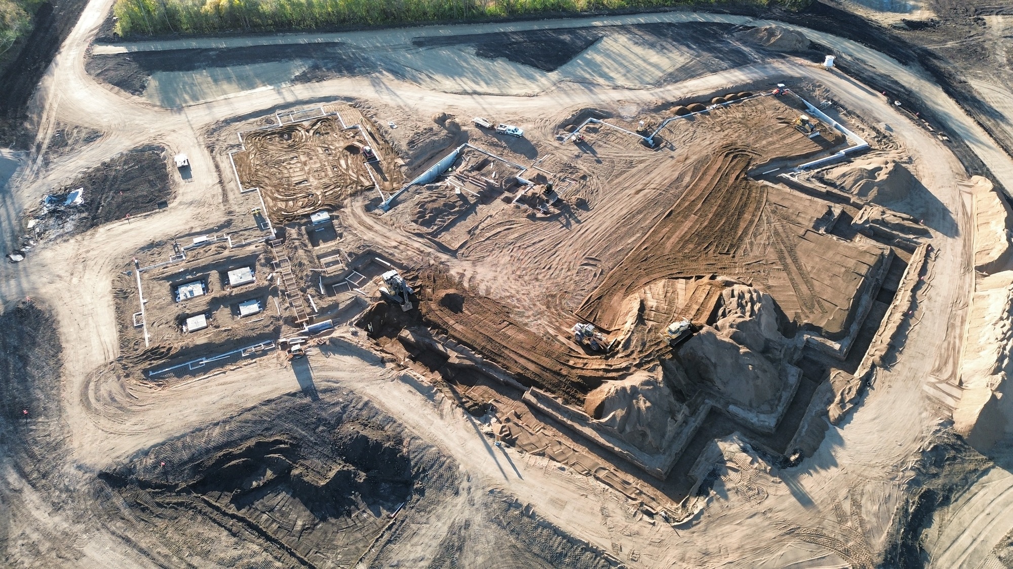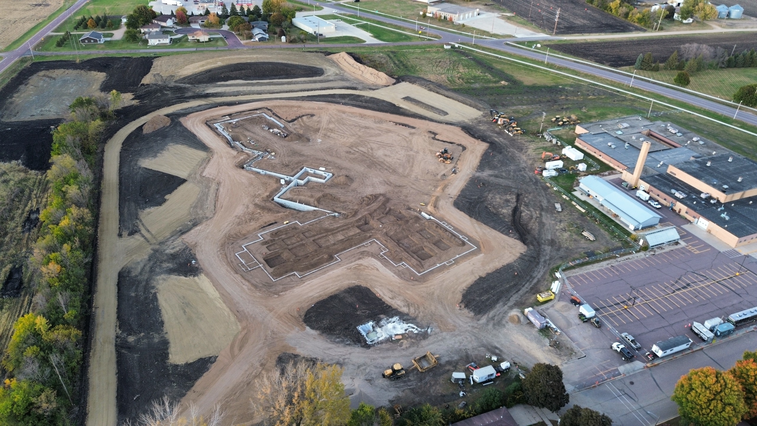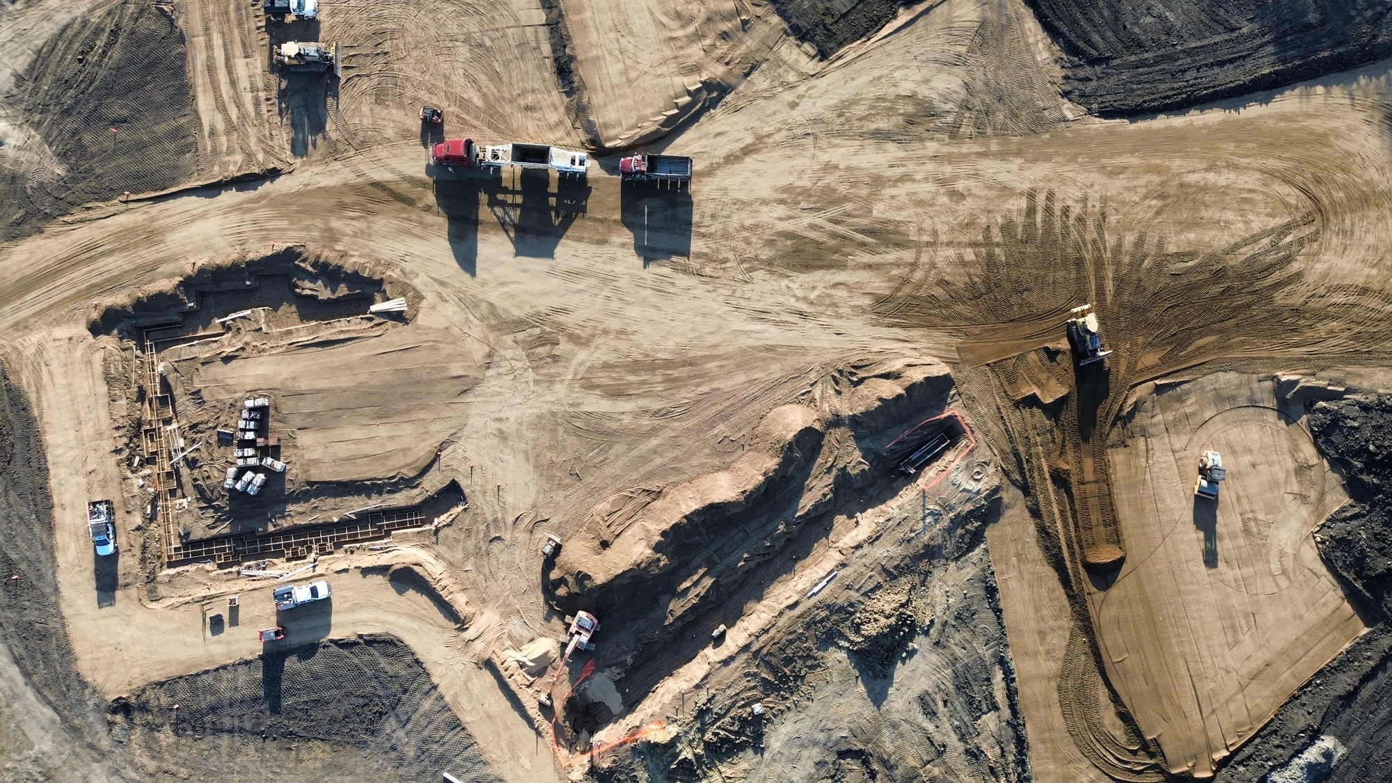 Site preparation is complete with mass grading finished and the pond fully dug. Crews have started installing underfloor plumbing and underslab electrical in select areas, laying the groundwork for upcoming phases. Footings and foundations are nearly complete, paving the way for the next milestone. Precast wall panels will soon be set up on site, giving the structure its first visible form.