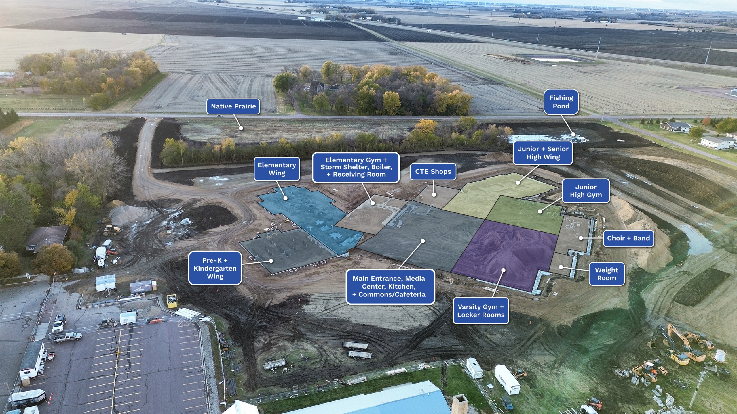 Confronted with the challenges of three aging facilities, the District initiated a facility assessment to evaluate the needs of each building. Through the process, it was determined that constructing a single, new campus would most effectively meet educational needs of students and the physical and financial needs of the District. In May 2024, the communities of Martin County West approved a bond to fund the development of a new PreK–12 facility at the current high school site.
