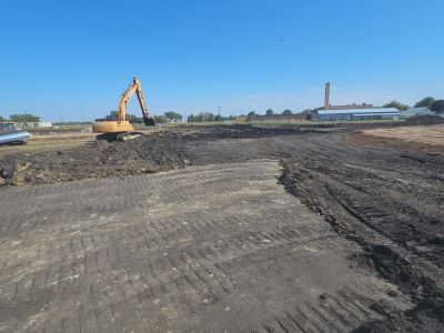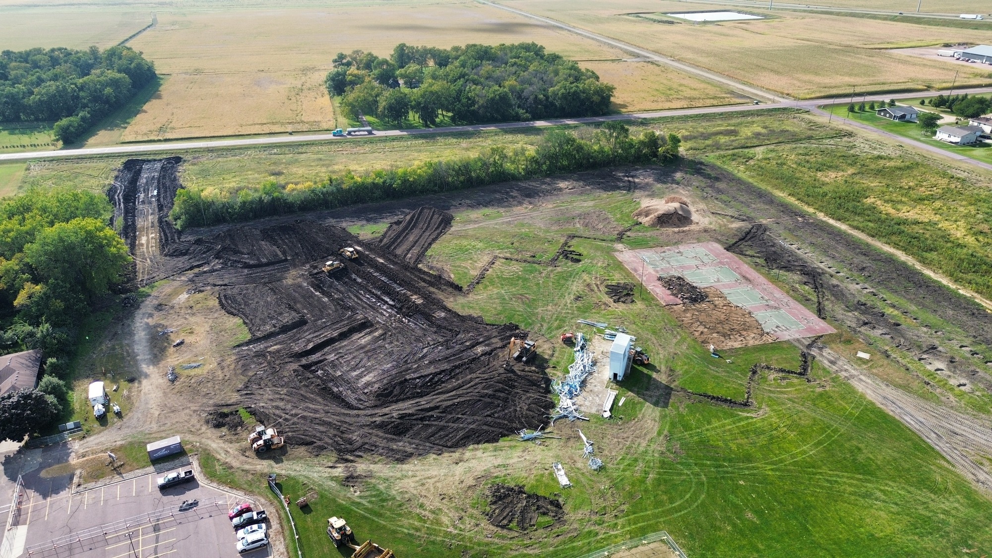 Much of the overall site has been cleared of trees needed and other elements like the press box, bleachers, and tennis courts.